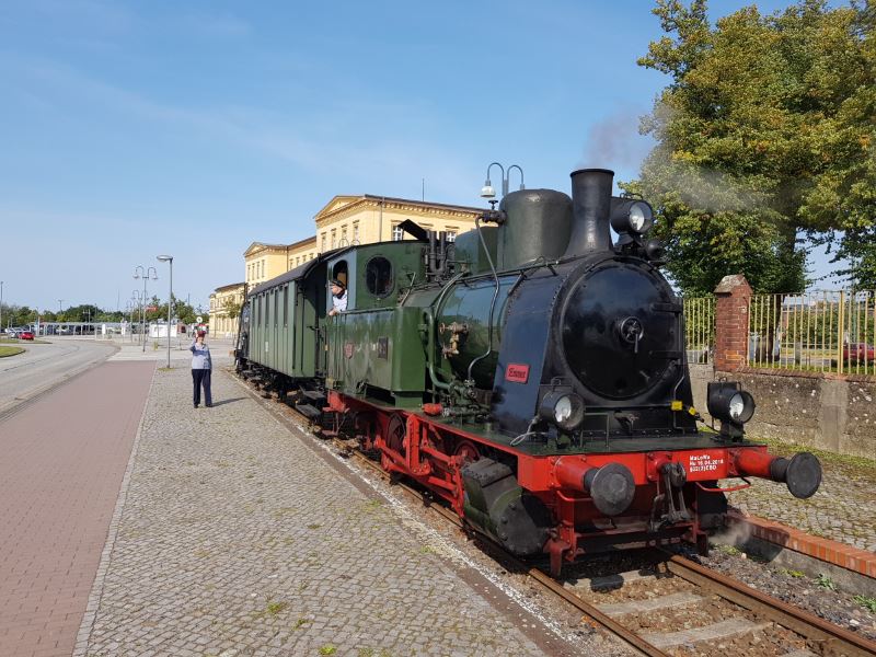 Bereits am Samstag, den 12.9., setzten wir unseren kurzen Museumszug bestehend aus Lok 0604 der OHE und einem zweiachsigen Personenwagen als Pendel zum Wittenberger Bahnhof ein.