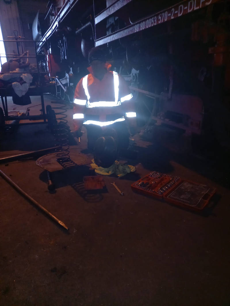 Die Lokomotive erhält auch eine Bremsrevision. Dazu wurden die Bremszylinder demontiert und die Bremskolben untersucht.
