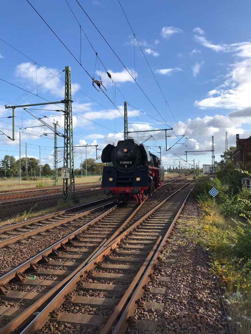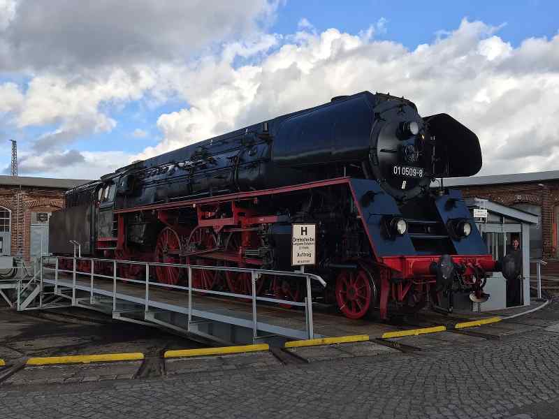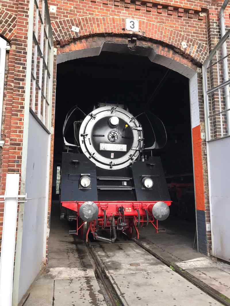 Wir freuen uns sehr, dass uns heute die Schnellzugdampflok 01 0509-8 erreicht hat. Die Schnellzugdampflok wurde 1935 bei der Firma Krupp gebaut und 1963 einer umfangreichen Rekonstruktion im Reichsbahnausbesserungswerk Meiningen unterzogen. Sie war bereits zwischen 1968 und 1976 in Wittenberge zuhause und gehörte damals mit ihren Schwesterlokomotiven zu den Stars des Bahnbetriebswerkes und der gesamten Deutschen Reichsbahn. Die Lokomotive gehörte zu den leistungsfähigsten Dampfloks, die je über deutsche Schienen gefahren sind und sie beförderte unter anderem die Interzonenzüge zwischen Hamburg und Berlin und war damit im sehr hochwertigen Reisezugdienst eingesetzt. Sie gehört heute der Firma Pressnitztalbahn, die sie regelmäßig vor Sonderzügen im gesamten Bundesgebiet einsetzt.