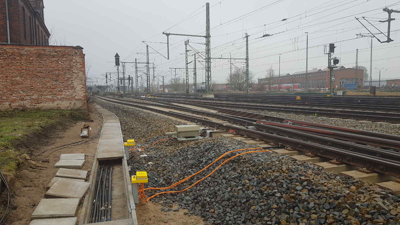Am gleichen Tag hatten wir nochmal Gelegenheit, uns unsere neue Gleiszufahrt anzusehen. Hier schreiten im Moment die Arbeiten für die elektrischen Weichenantriebe und Signale voran.