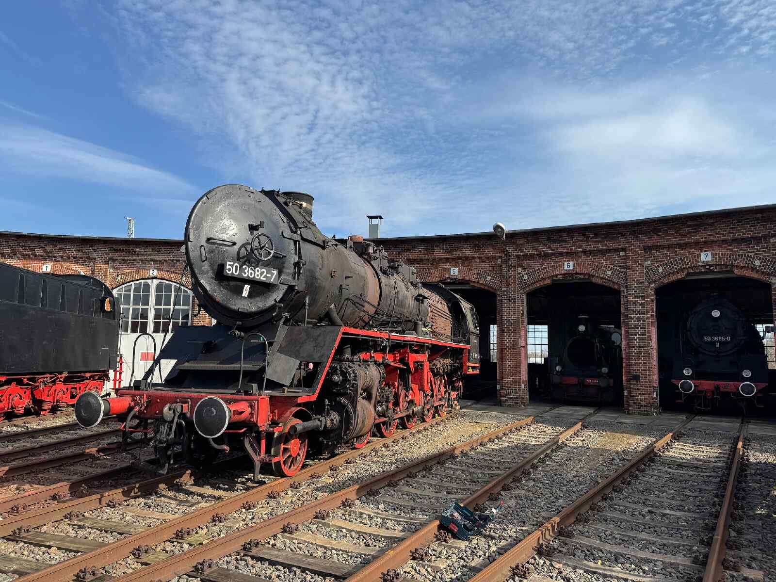 Ende der 1950er Jahre wurde unsere Lok im Ausbesserungswerk Stendal rekonstruiert und trug seitdem die Nummer 50 3682. Sie gehörte bis März 1993 zum Bestand der Deutschen Reichsbahn und wurde dann von einem Vereinskollegen erworben. Wir konnten sie bis 2019 betriebsfähig erhalten. Dann zwang uns allerdings der Zustand ihres Kessels dazu, sie abzustellen. Dessen Materialstärke ließ leider keinen weiteren sicheren Betrieb mehr zu.