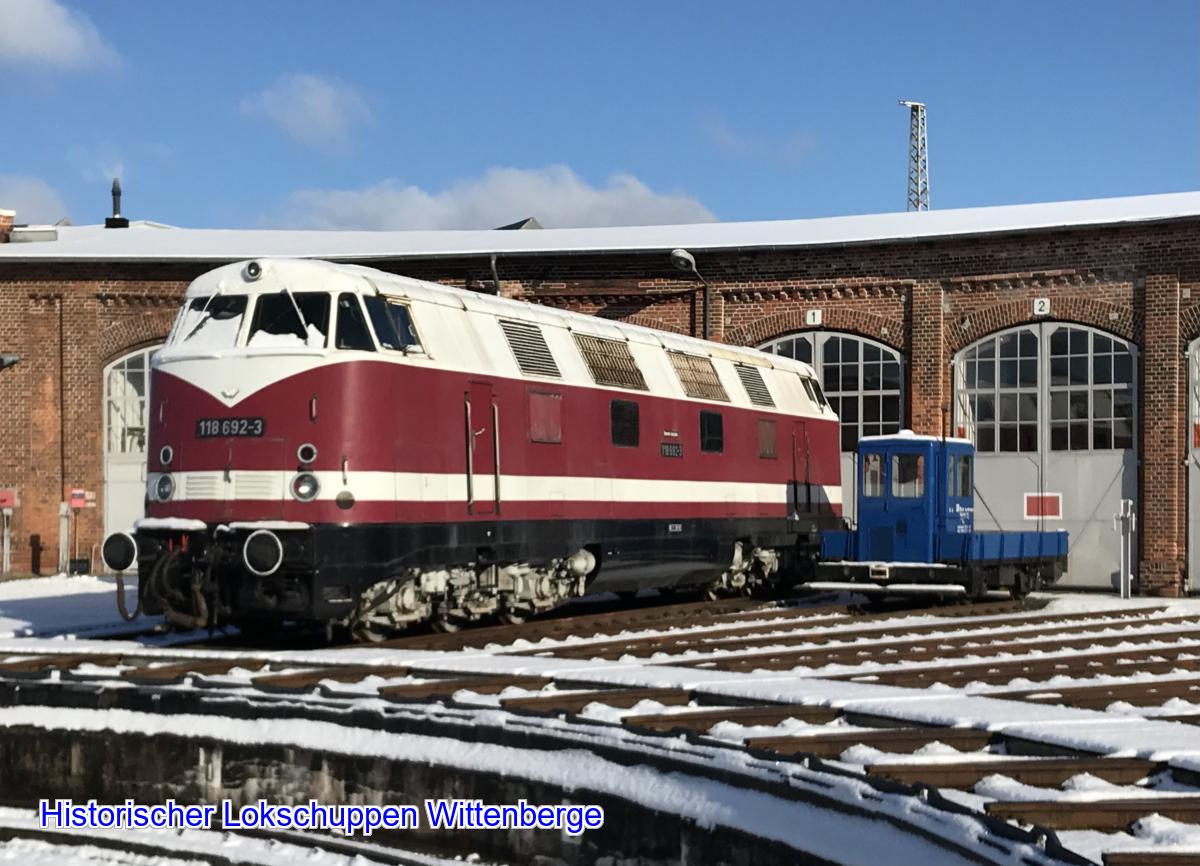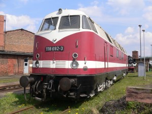 Die Diesellok 118 692-3 haben wir in unsere Sammlung aufgenommen, weil sie zu einer der typischen Bauarten gehört, die die Dampfloks in der Altmark zu Beginn der achtziger Jahre abgelöst haben. Inzwischen gehört auch sie schon zum alten Eisen und so ging es im Jahr 1997 nur um Tage, um sie vor der Verschrottung zu bewahren. Nachdem die Deutsche Bahn AG sich bereiterklärt hatte, uns diese Lok als Dauerleihgabe zur Verfügung zu stellen, haben wir sie von einem Abstellplatz in Wittenberg geborgen und inzwischen in Salzwedel äußerlich aufgearbeitet.