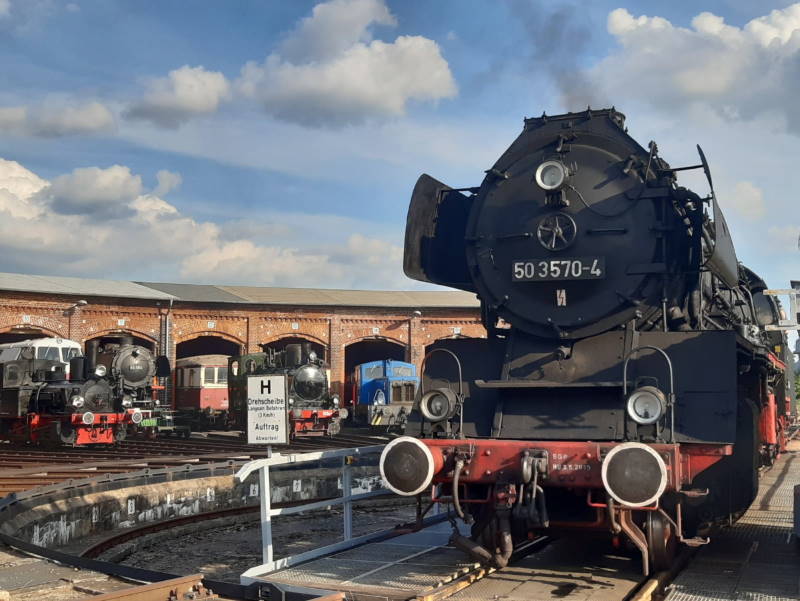 Selbstverständlich kam auch der Dampfbetrieb nicht zu kurz. Hier wird gerade die 50 3570 auf der Drehscheibe präsentiert, währen die Lok Pritzwalk an der Seite auf ihren Auftritt wartet.