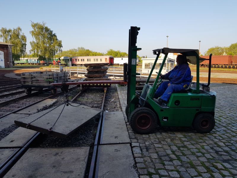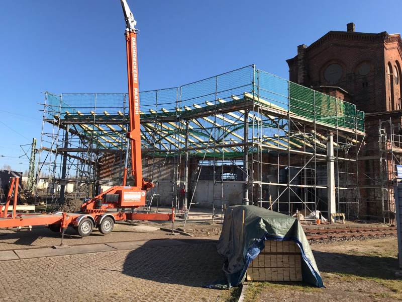 Weiterhin wurde die Dacheindeckung der Anbauten der Wasserstation am Rundlokschuppen aufgearbeitet. Für die Maßnahmen hatte die Stadt im September 2019 einen Zuwendungsbescheid über 39 079 Euro aus dem Denkmalschutz-Sonderprogramm IV des Bundes erhalten. Denselben Betrag hat die Stadt als Eigentümerin nochmals obendrauf gelegt.
